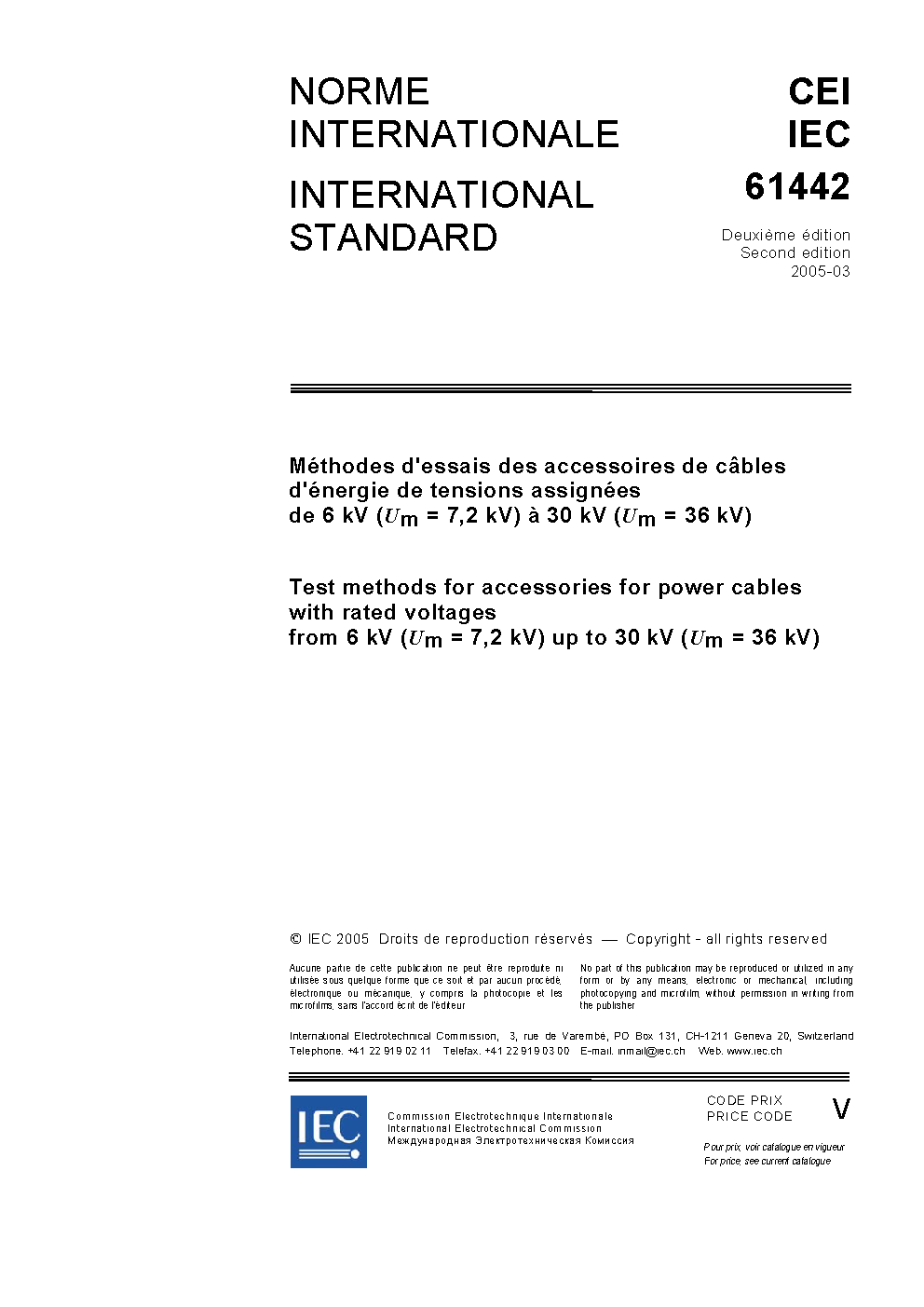 IEC 61442:2023 Test methods for accessories for power cables with rated voltages from 6 kV (Um = 7,2 kV) up to 30 kV (Um = 36 kV)