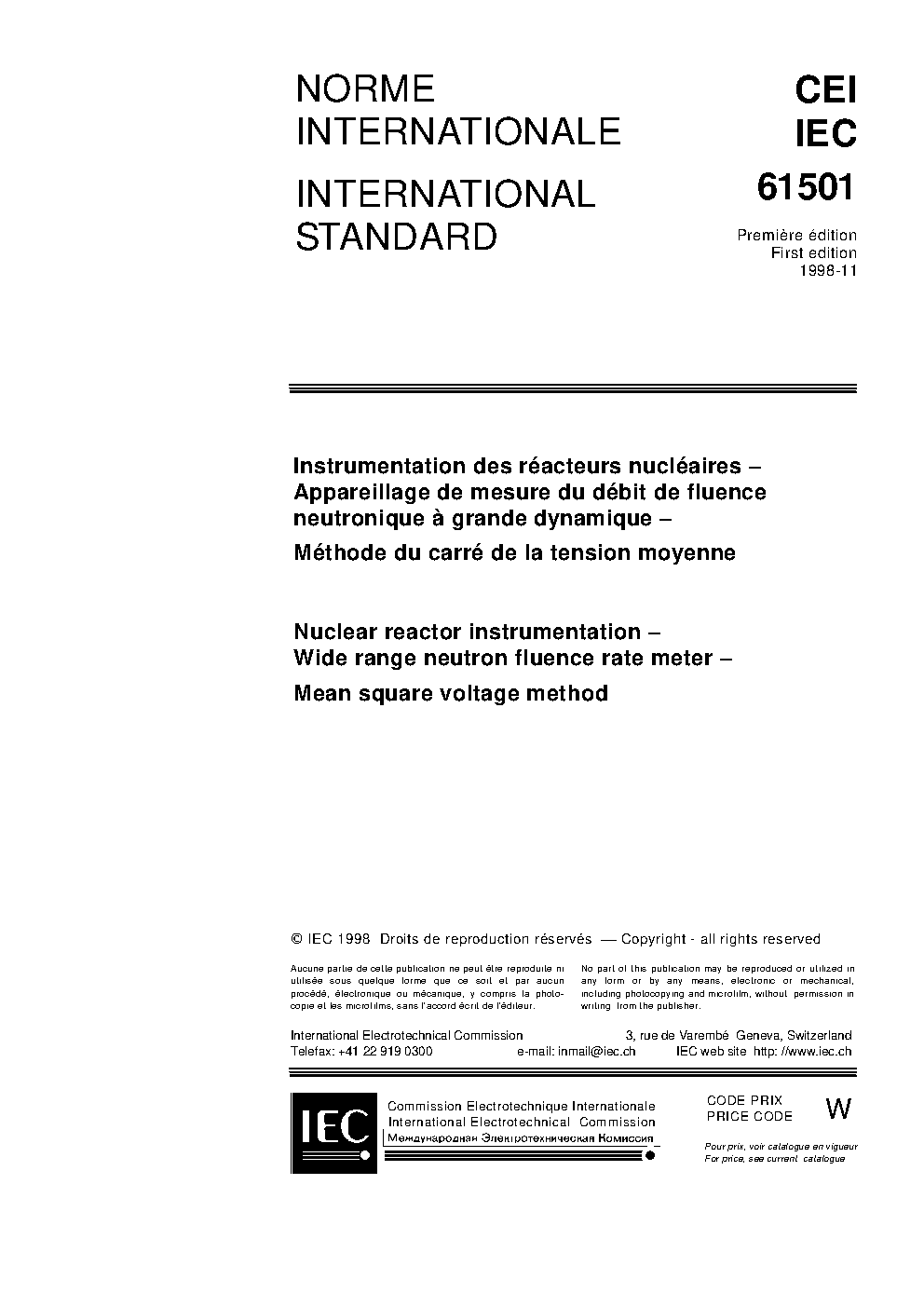IEC 61501:1998 Nuclear reactor instrumentation - Wide range neutron fluence rate meter - Mean square voltage method