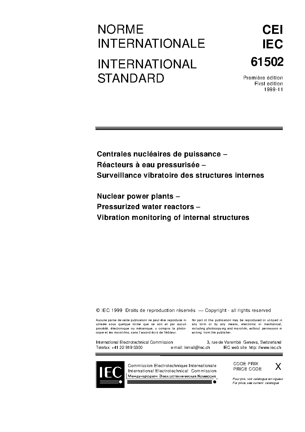 IEC 61502:1999 Nuclear power plants - Pressurized water reactors - Vibration monitoring of internal structures