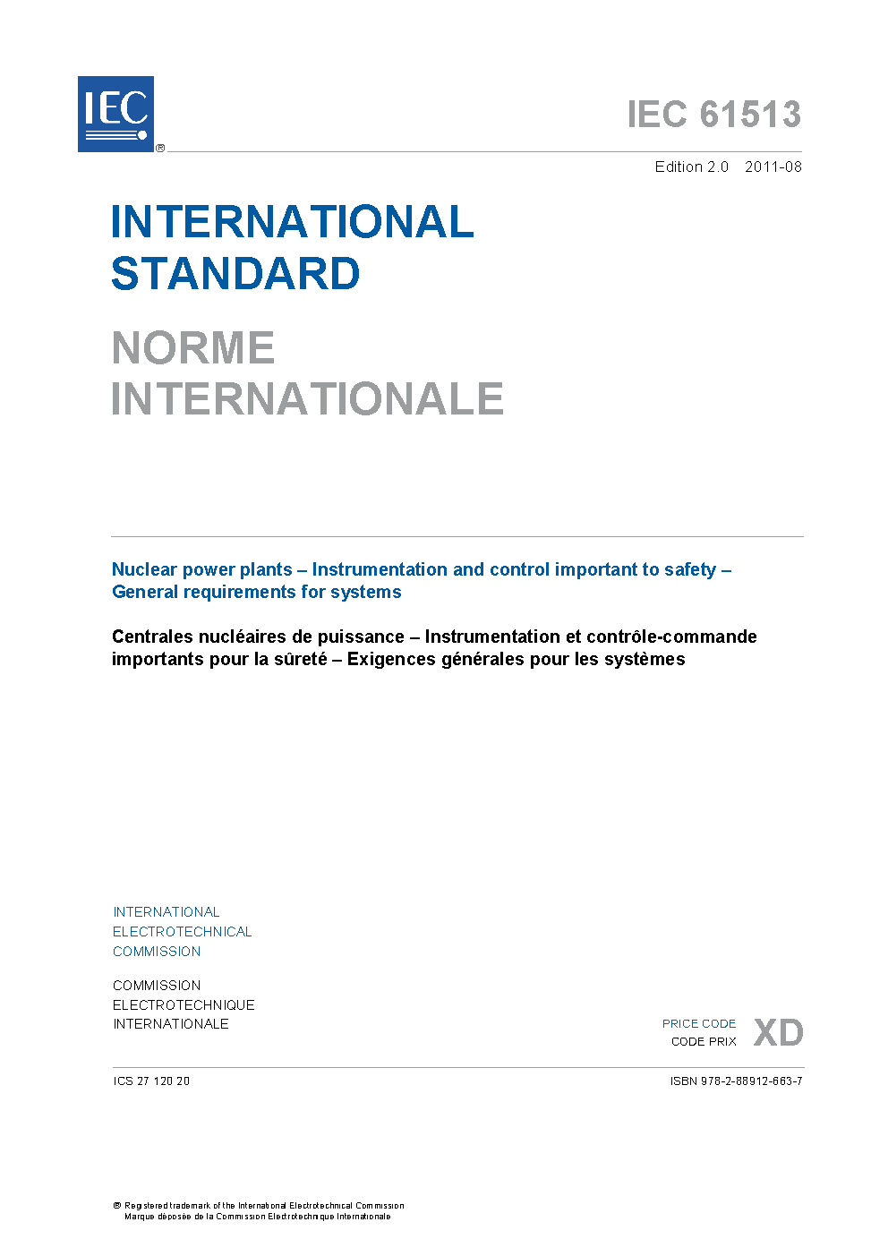IEC 61513:2011 Nuclear power plants - Instrumentation and control important to safety - General requirements for systems
