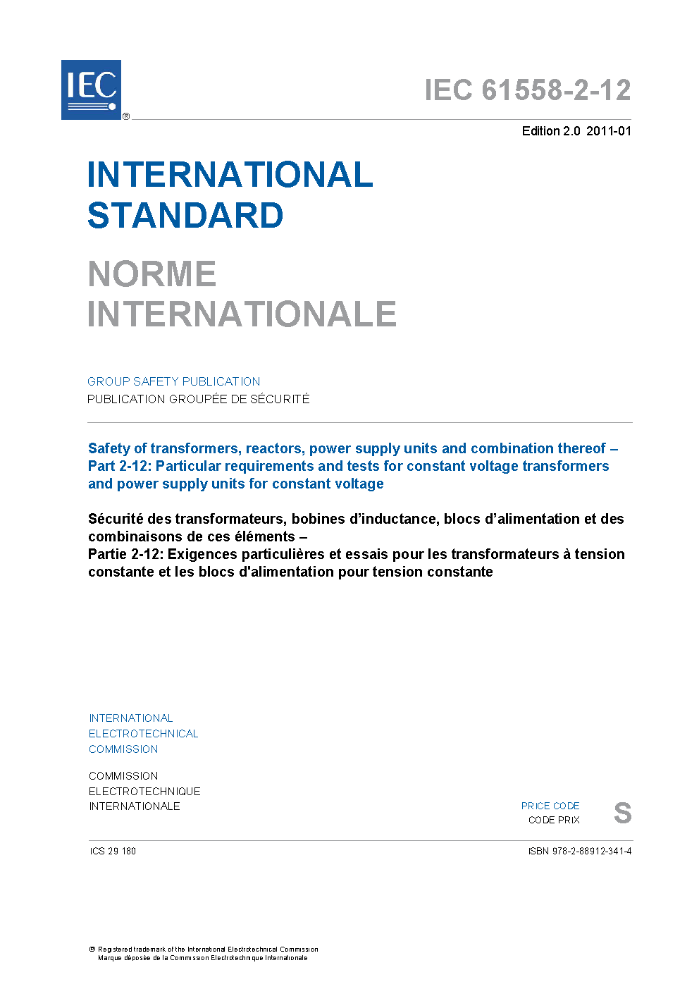 IEC 61558-2-12:2024 Safety of transformers, reactors, power supply units and combinations thereof - Part 2-12: Particular requirements and tests for constant voltage transformers and power supply units for constant voltage