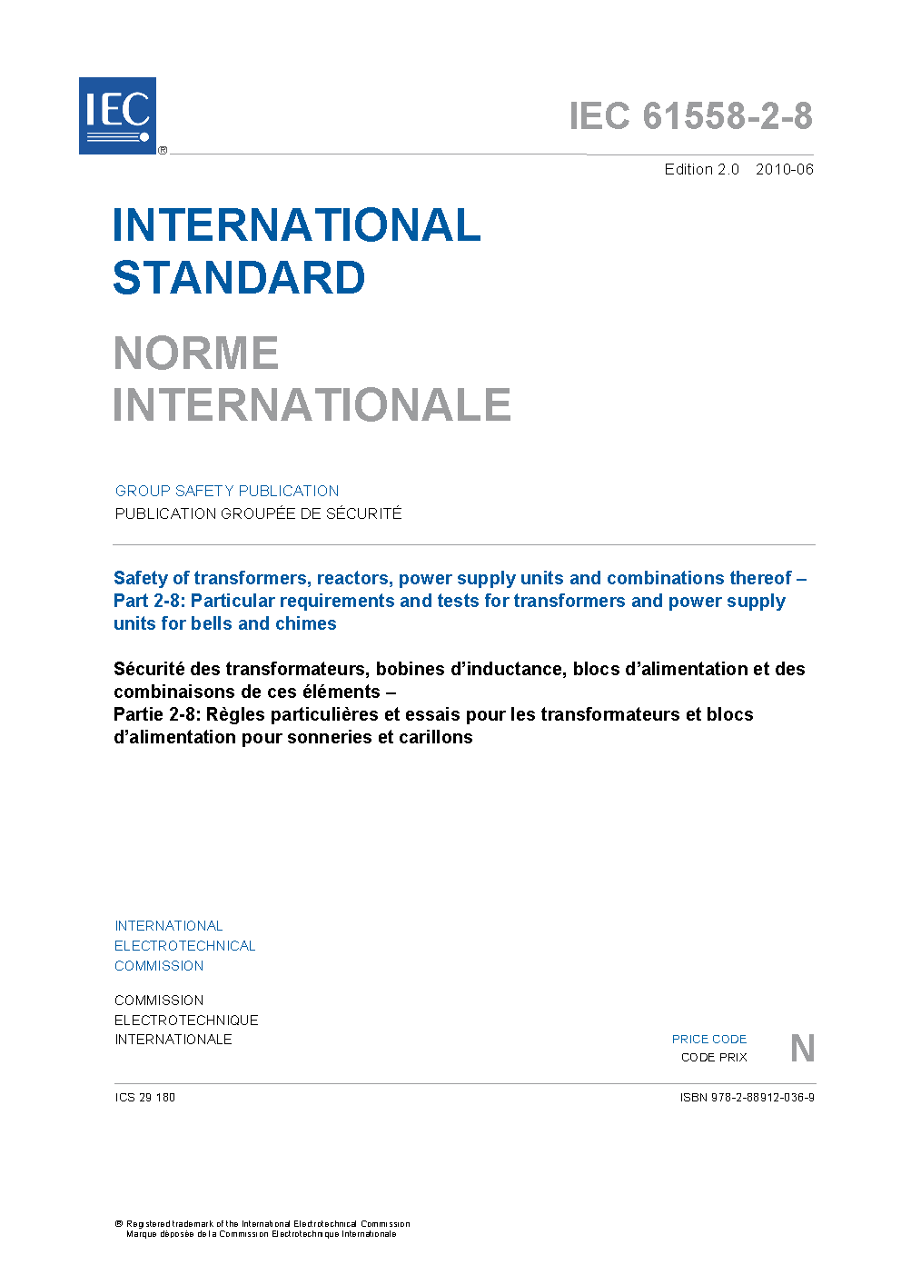 IEC 61558-2-8:2024 Safety of transformers, reactors, power supply units and combinations thereof - Part 2-8: Particular requirements and tests for transformers and power supply units for bells and chimes