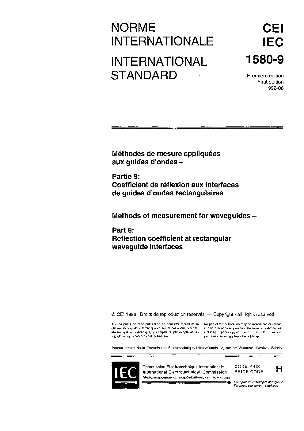 IEC 61580-9:1996 Methods of measurement for waveguides - Part 9: Reflection coefficient at rectangular waveguide interfaces