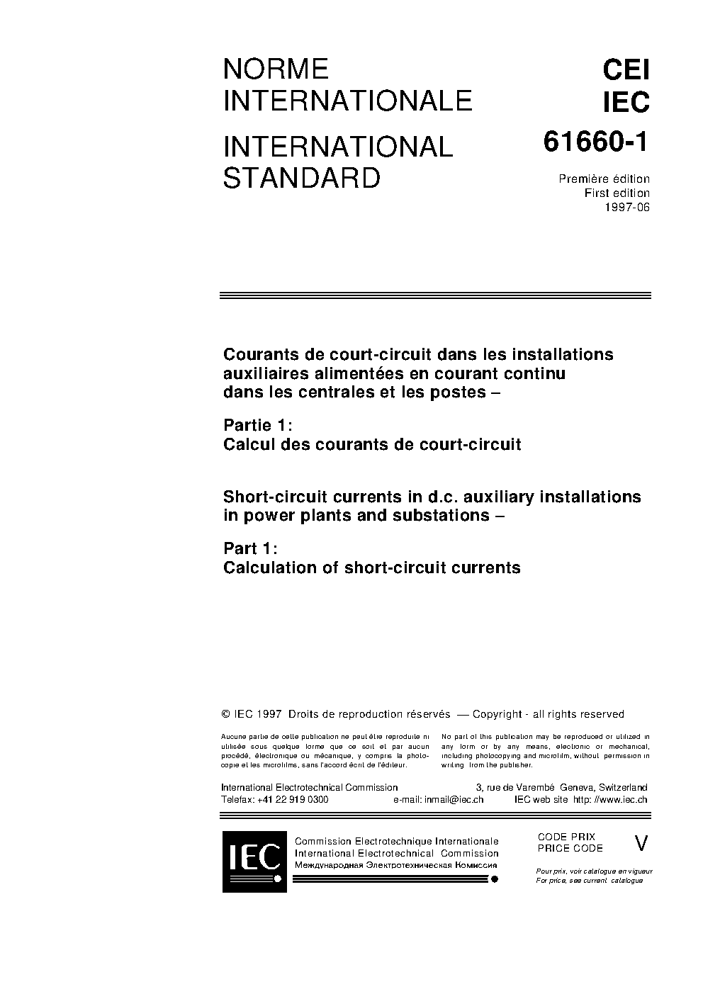 IEC 61660-1:1997/COR1:1999 Corrigendum 1 - Short-circuit currents in d.c. auxiliary installations in power plants and substations - Part 1: Calculation of short-circuit currents
