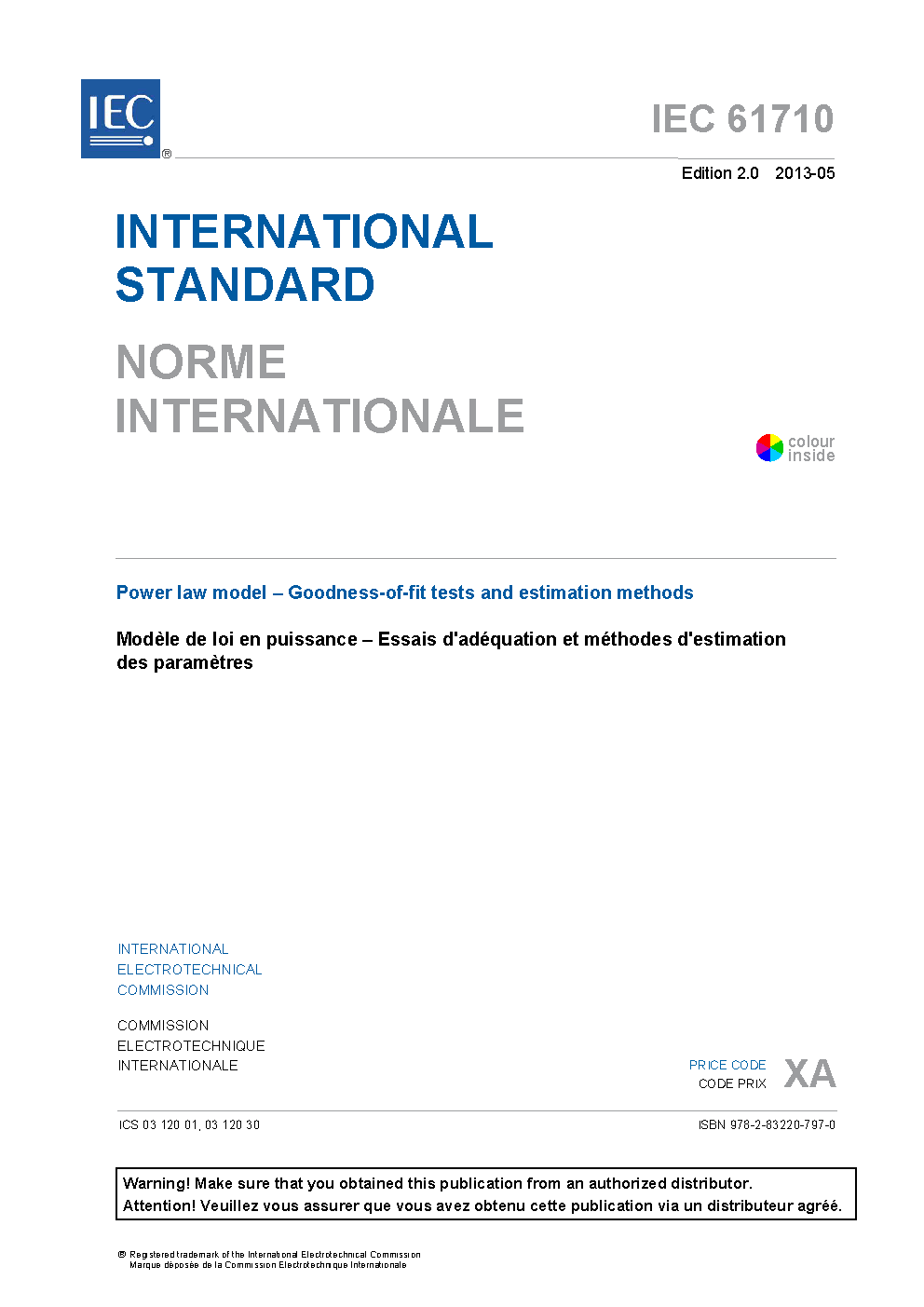IEC 61710:2013 Power law model - Goodness-of-fit tests and estimation methods