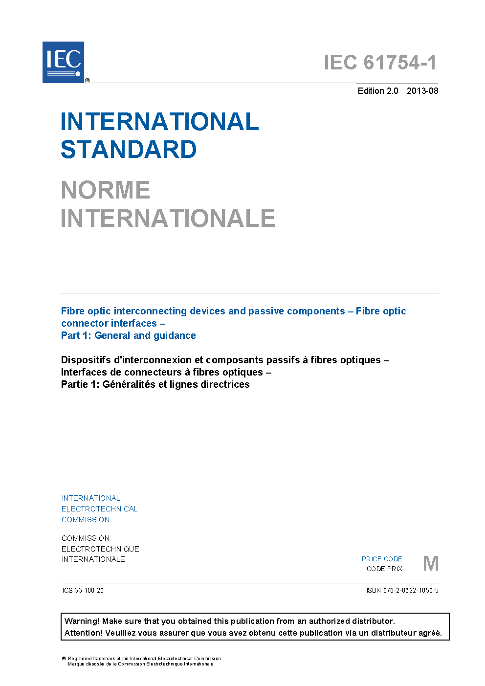 IEC 61754-1:2013 Fibre optic interconnecting devices and passive components - Fibre optic connector interfaces - Part 1: General and guidance
