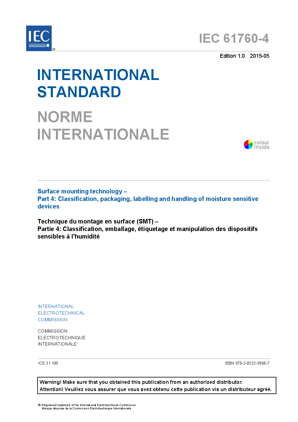IEC 61760-4:2015/AMD1:2018 Amendment 1 - Surface mounting technology - Part 4: Classification, packaging, labelling and handling of moisture sensitive devices