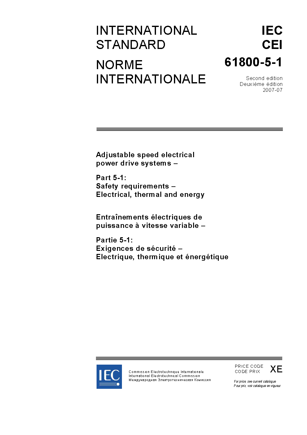 IEC 61800-5-1:2007 Adjustable speed electrical power drive systems - Part 5-1: Safety requirements - Electrical, thermal and energy