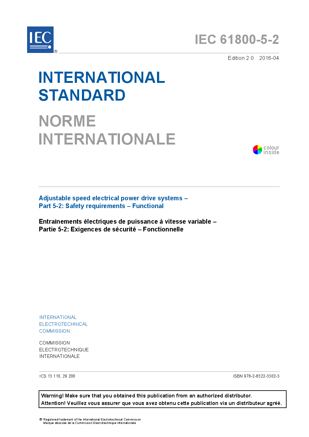 IEC 61800-5-2:2016 Adjustable speed electrical power drive systems - Part 5-2: Safety requirements - Functional