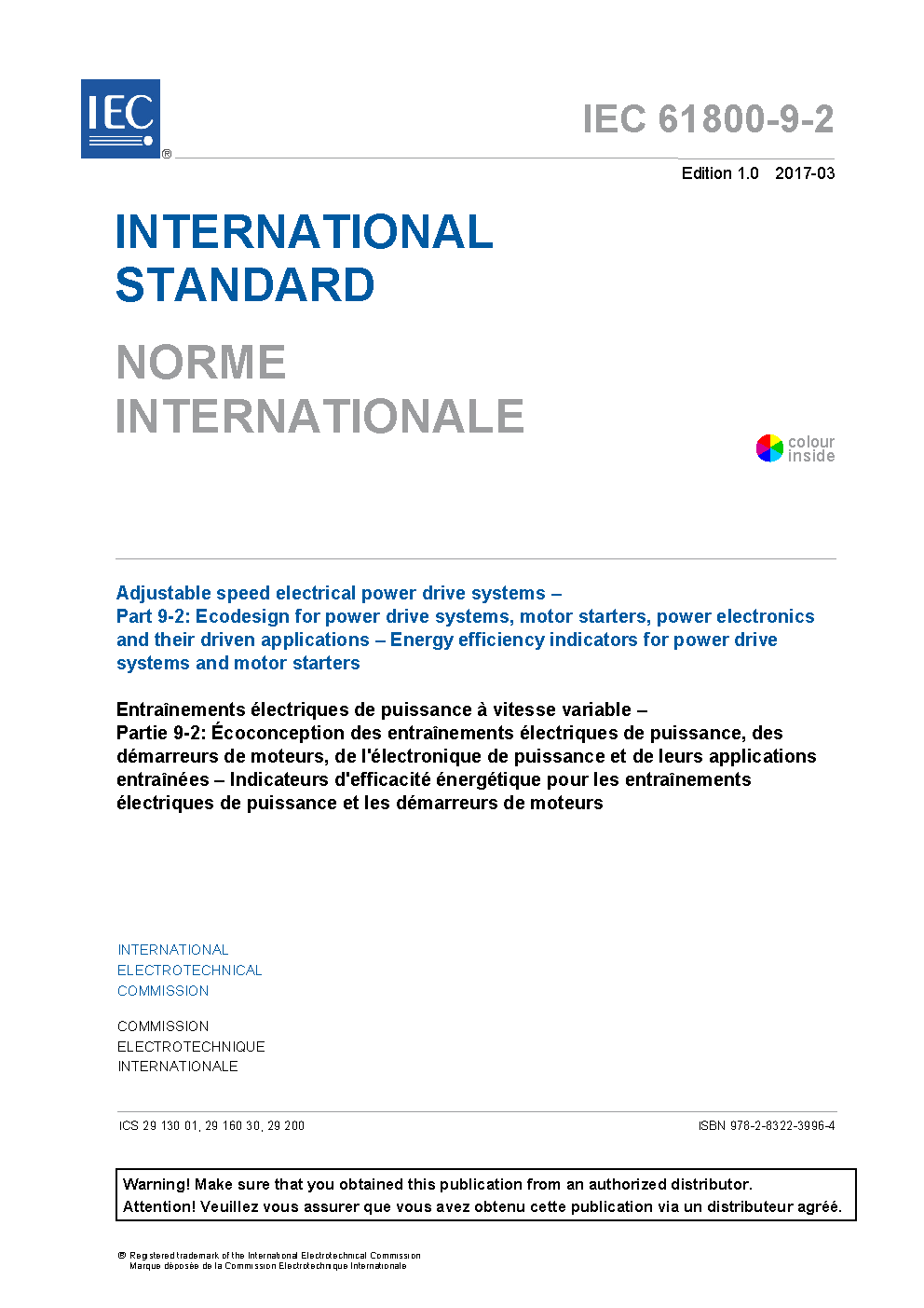 IEC 61800-9-2:2023 specifies energy efficiency indicators of power electronics (complete drive modules (CDM), input or output sub drive modules (SDM), power drive systems (PDS) and motor starters, all used for motor driven equipment.