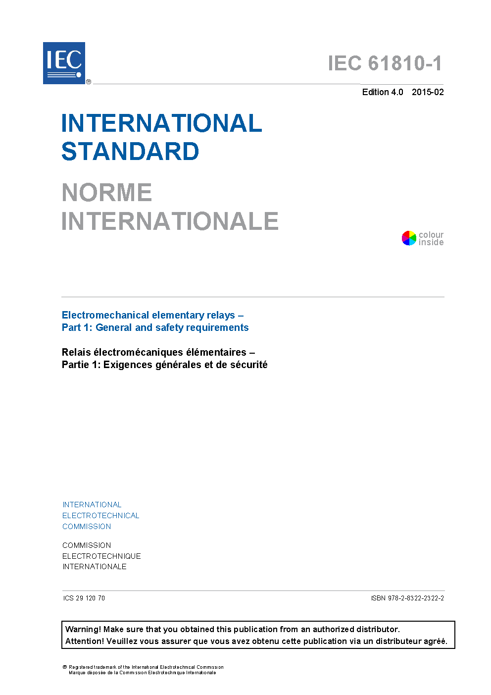 IEC 61810-1:2015 Electromechanical elementary relays - Part 1: General and safety requirements