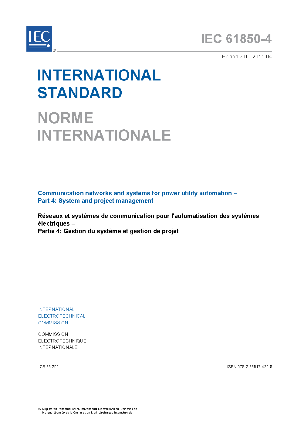 IEC 61850-4:2011 Communication networks and systems for power utility automation - Part 4: System and project management