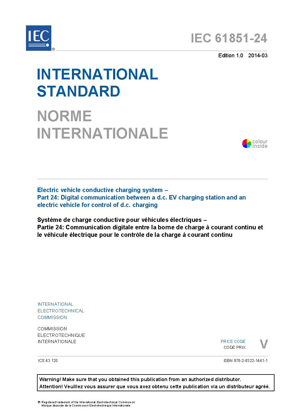 IEC 61851-24:2014 Electric vehicle conductive charging system - Part 24: Digital communication between a d.c. EV charging station and an electric vehicle for control of d.c. charging