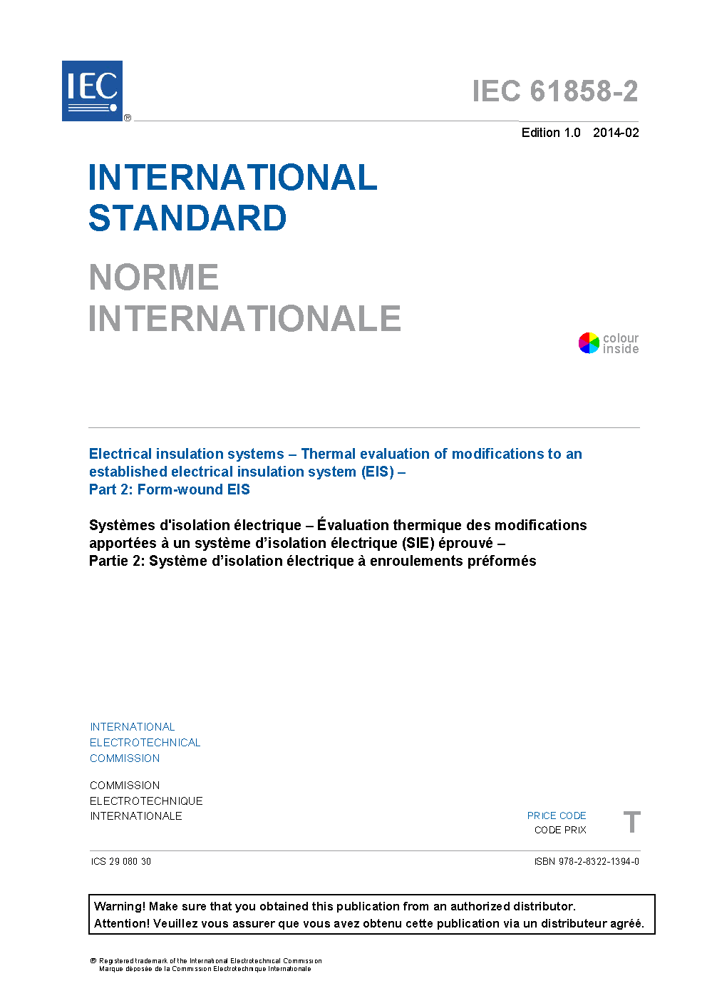 IEC 61858-2:2014 Electrical insulation systems - Thermal evaluation of modifications to an established electrical insulation system (EIS) - Part 2: Form-wound EIS