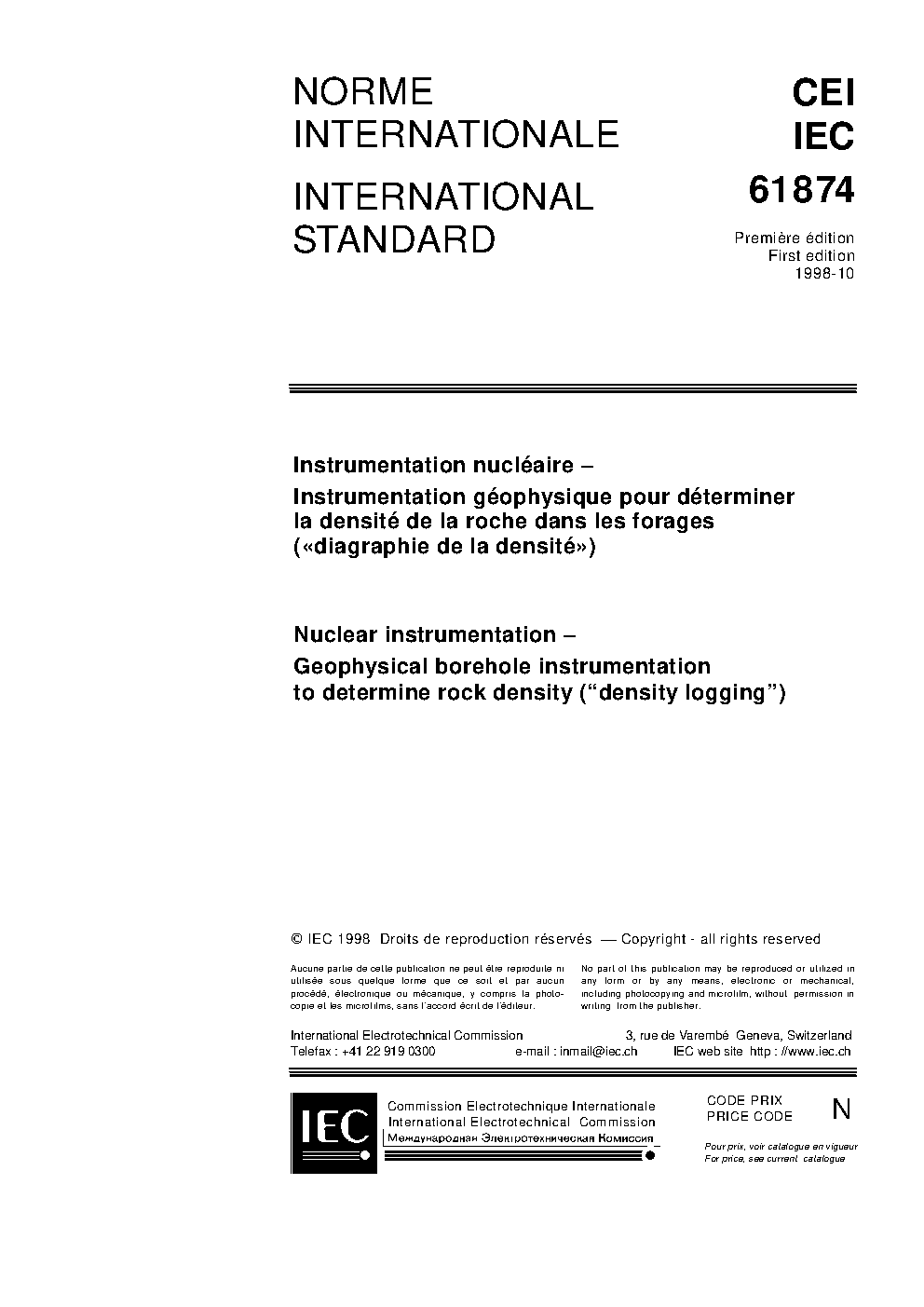 IEC 61874:2025 Nuclear instrumentation - Geophysical borehole instrumentation to determine rock density ('density logging')