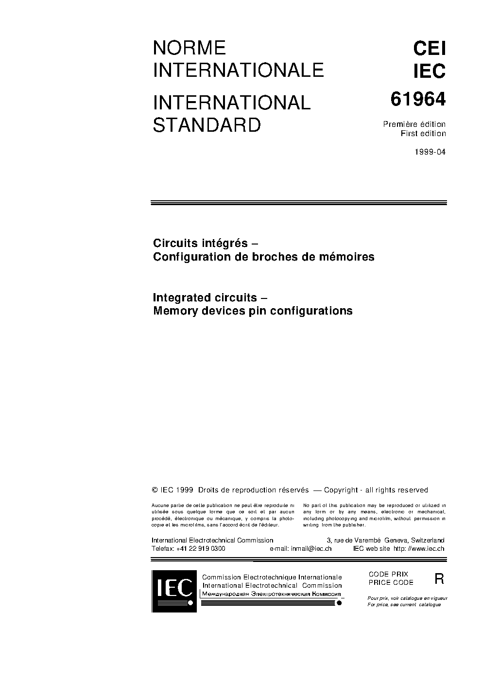 IEC 61964:1999 Integrated circuits - Memory devices pin configurations