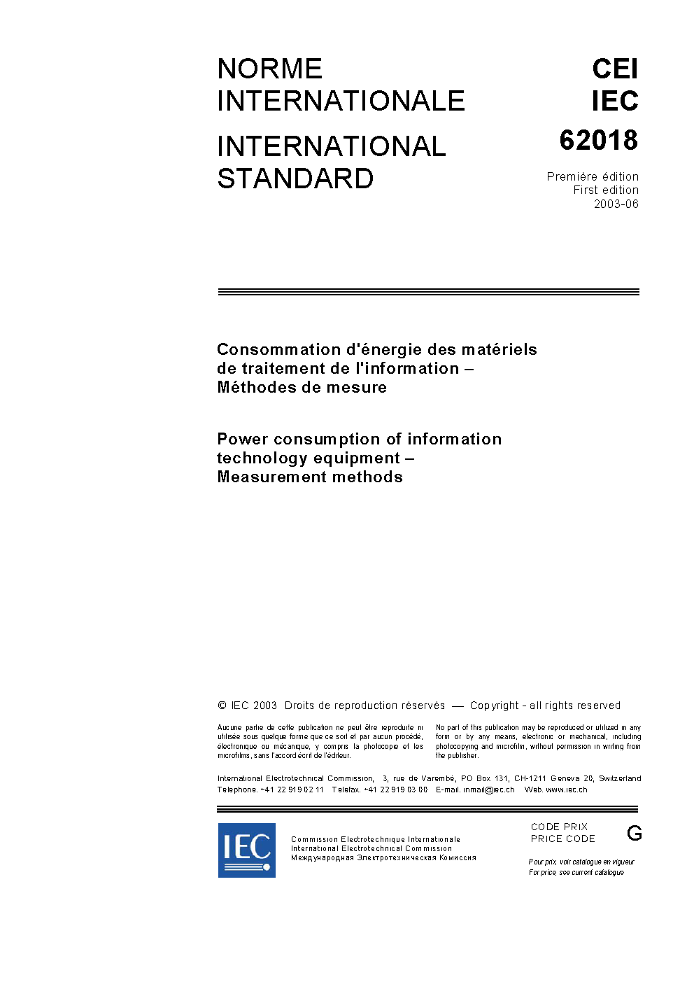 IEC 62018:2003 Power consumption of information technology equipment - Measurement methods