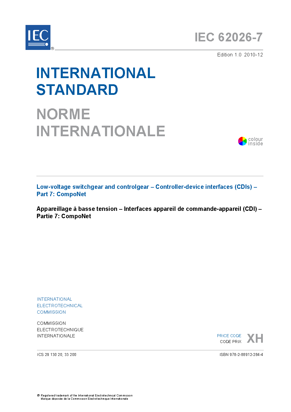 IEC 62026-7:2010 Low-voltage switchgear and controlgear - Controller-device interfaces (CDIs) - Part 7: CompoNet