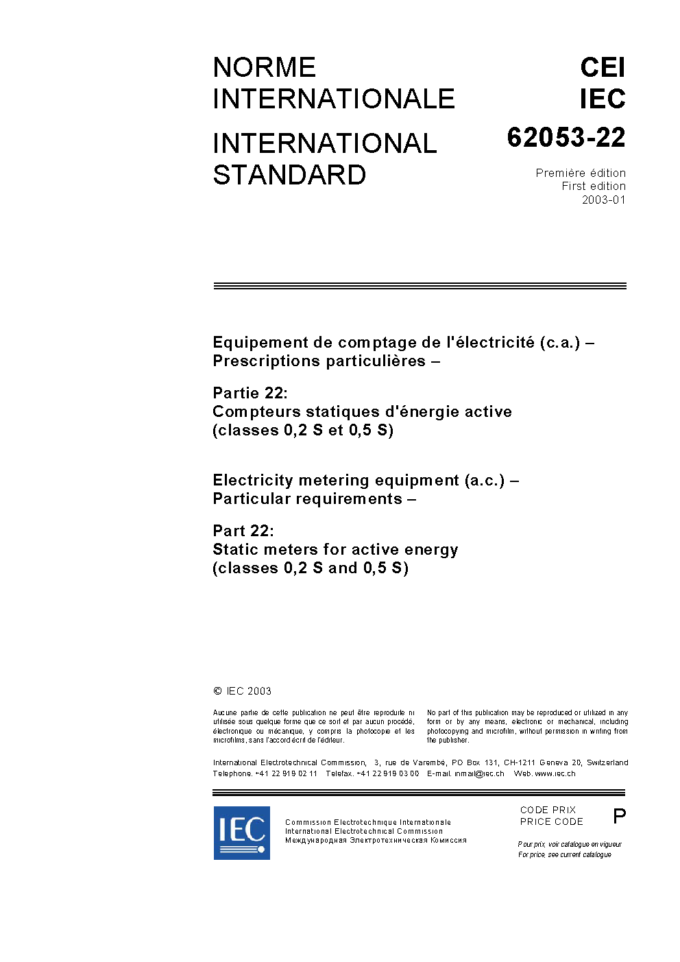 IEC 62053-22:2003/AMD1:2016/COR1:2018 Corrigendum 1 - Amendment 1 - Electricity metering equipment (A.C.) - Particular requirements - Part 22: Static meters for active energy (classes 0,2 S and 0,5 S)