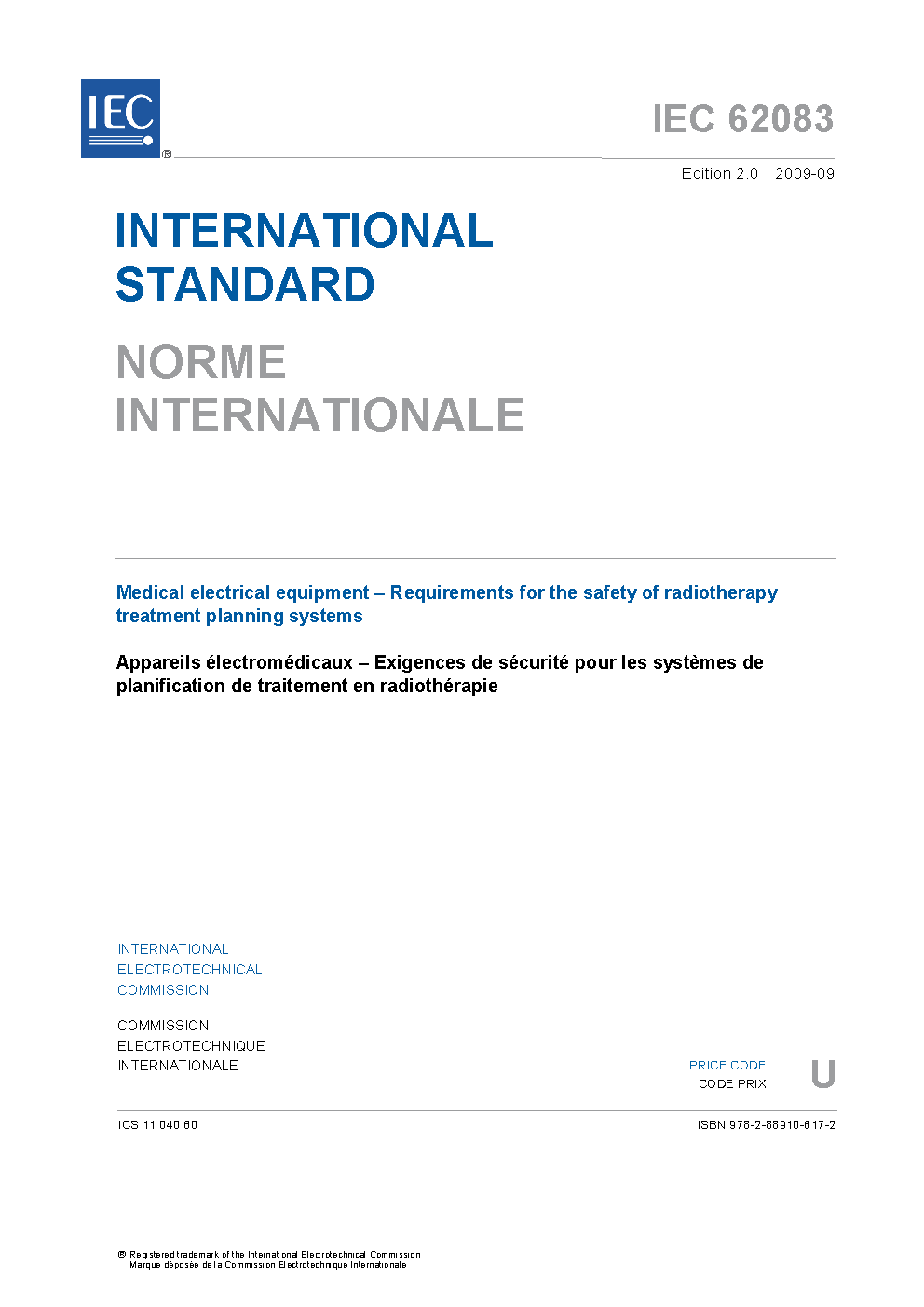 IEC 62083:2009 Medical electrical equipment - Requirements for the safety of radiotherapy treatment planning systems