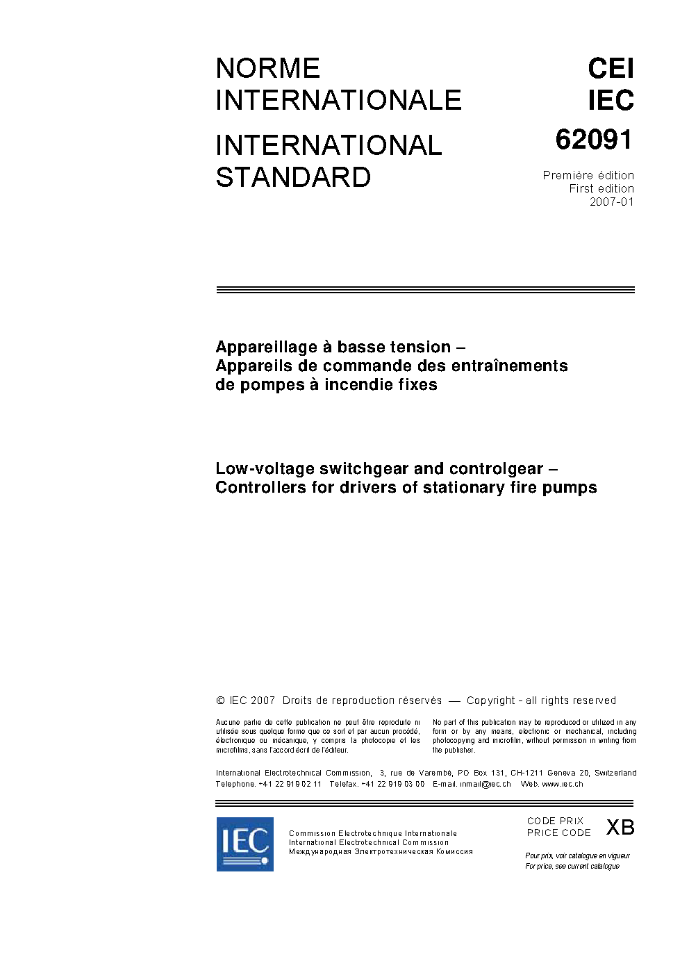 IEC 62091:2007 Low-voltage switchgear and controlgear - Controllers for drivers of stationary fire pumps