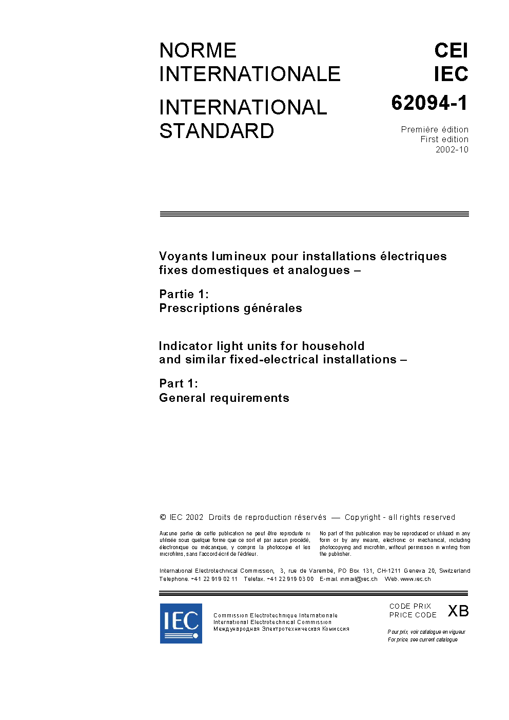 IEC 62094-1:2002 Indicator light units for household and similar fixed-electrical installations - Part 1: General requirements