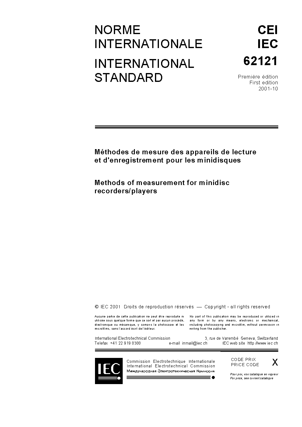 IEC 62121:2001 Methods of measurement for minidisc recorders/players