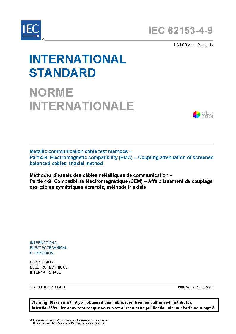 IEC 62153-4-9:2018/AMD2:2024 Amendment 2 - Metallic communication cable test methods - Part 4-9: Electromagnetic compatibility (EMC) related test method for measuring coupling attenuation of screened balanced cables - Triaxial method