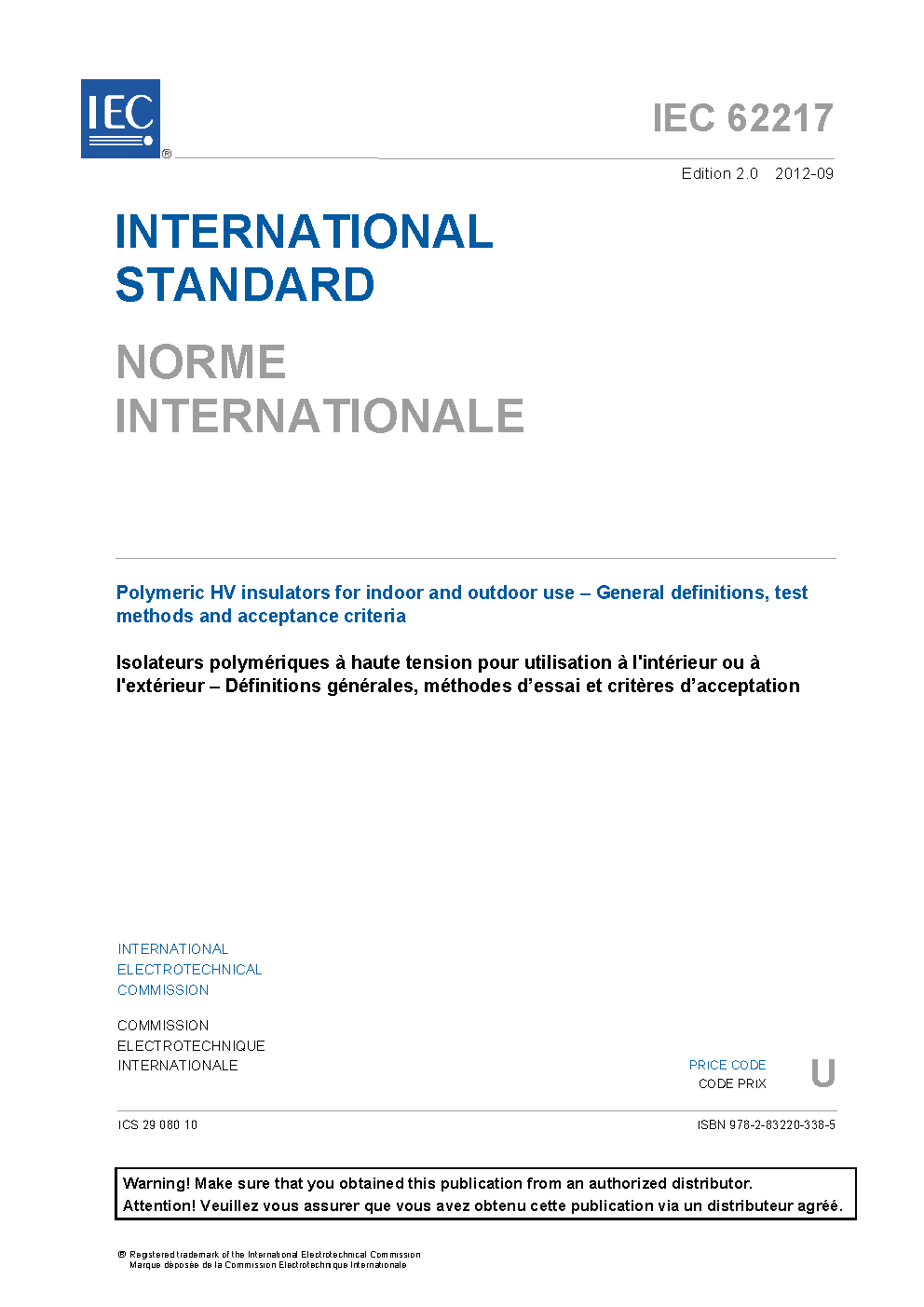 IEC 62217:2025 Polymeric HV insulators for indoor and outdoor use - General definitions, test methods and acceptance criteria