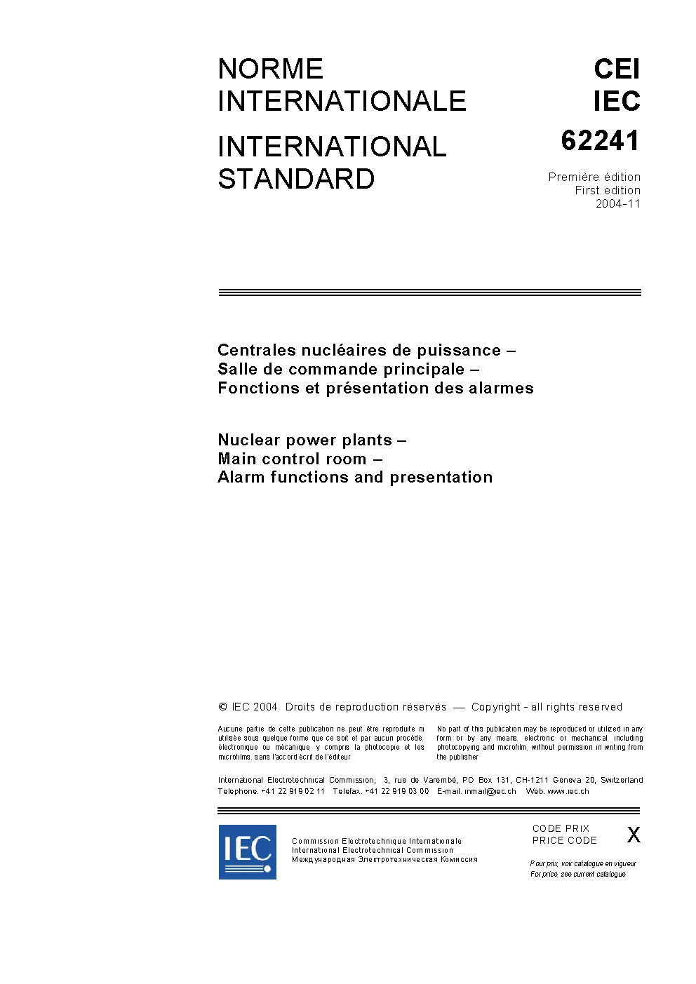 IEC 62241:2004 Nuclear power plants - Main control room - Alarm functions and presentation