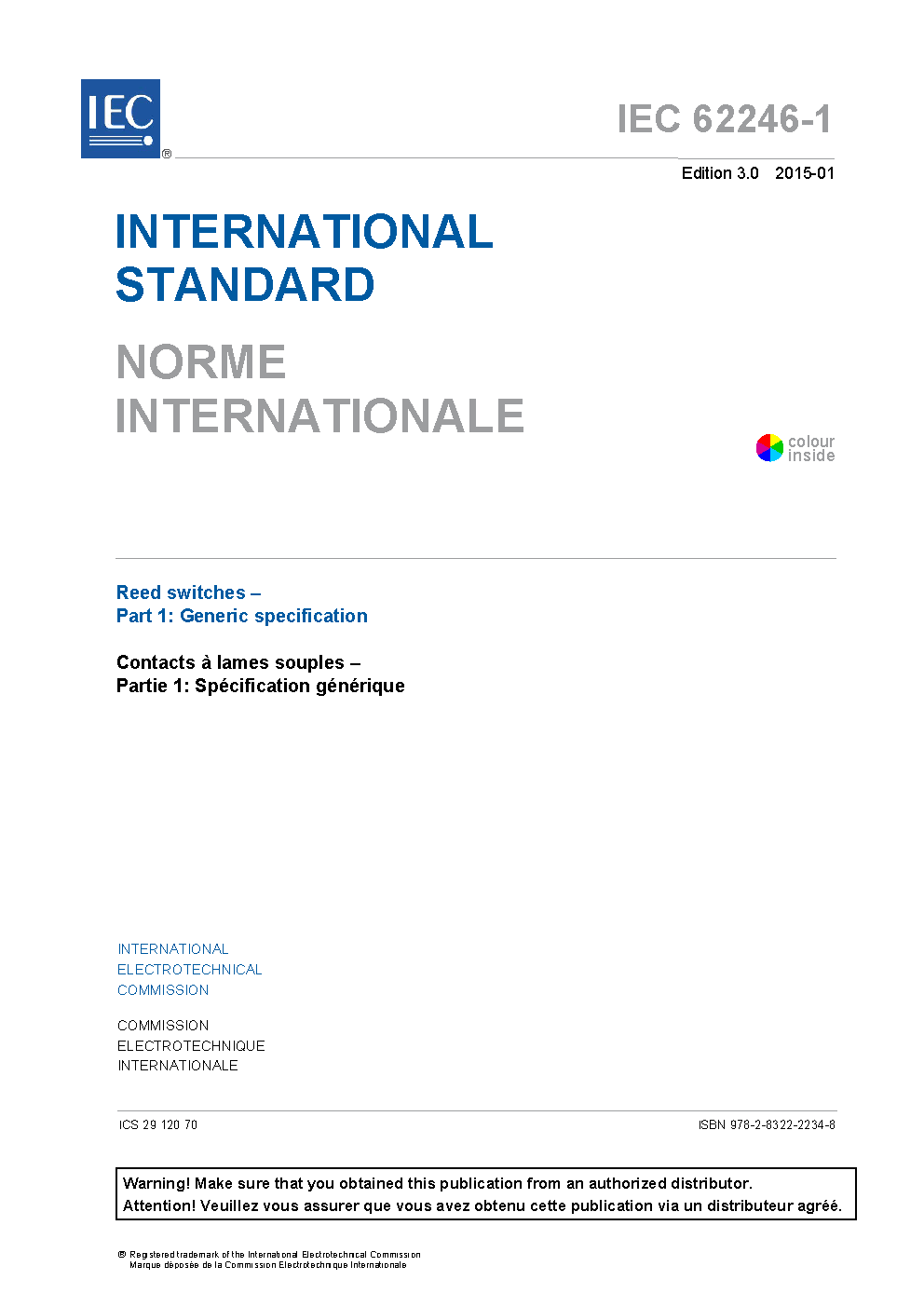 IEC 62246-1:2015 Reed switches - Part 1: Generic specification