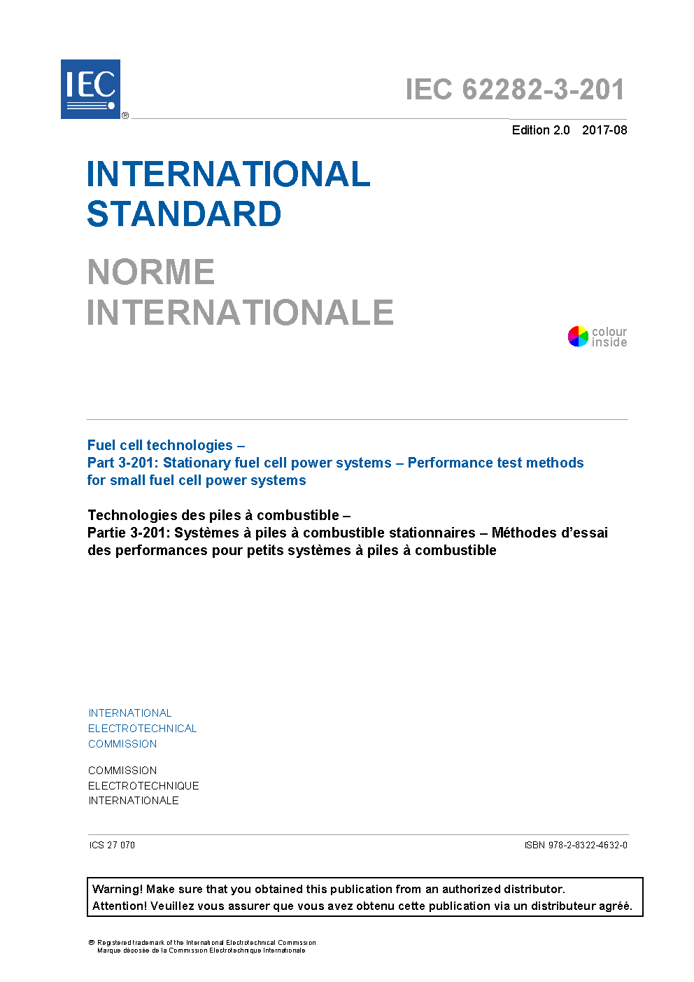 IEC 62282-3-201:2013 provides test methods for the electric/thermal and environmental performance of small stationary fuel cell power systems that meet the following criteria: