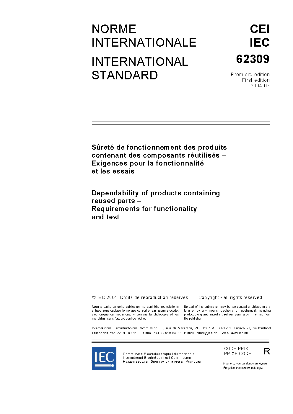 IEC 62309:2004 Dependability of products containing reused parts - Requirements for functionality and tests