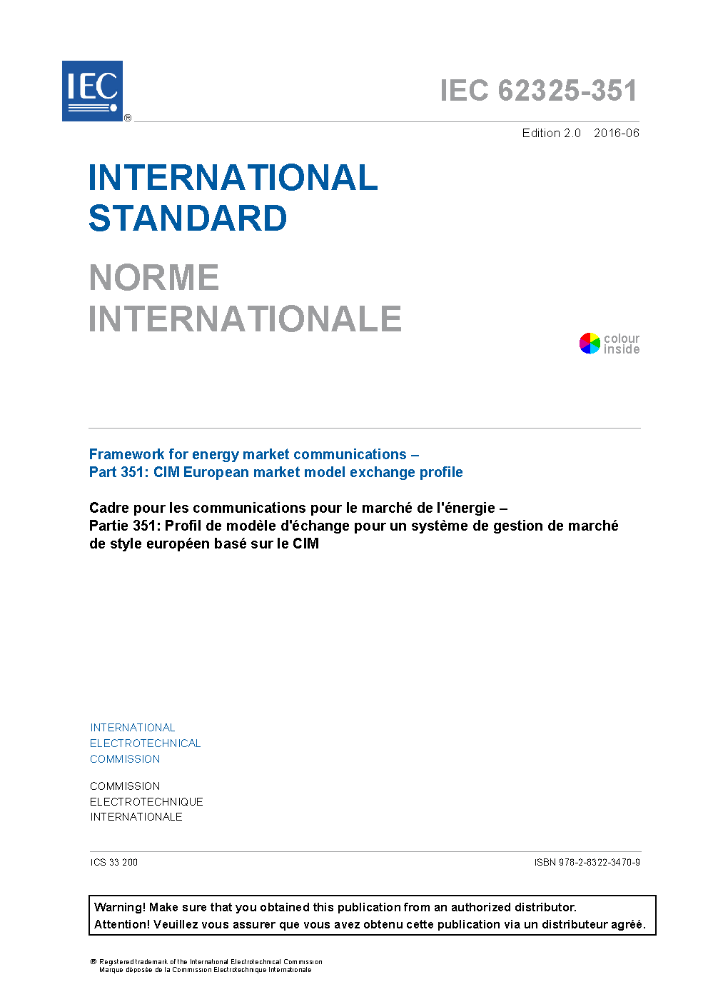 IEC 62325-351:2016 Framework for energy market communications - Part 351: CIM European market model exchange profile