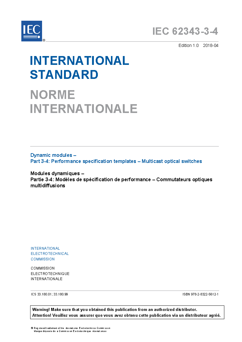 IEC 62343-3-4:2018 Dynamic modules - Part 3-4: Performance specification templates - Multicast optical switches