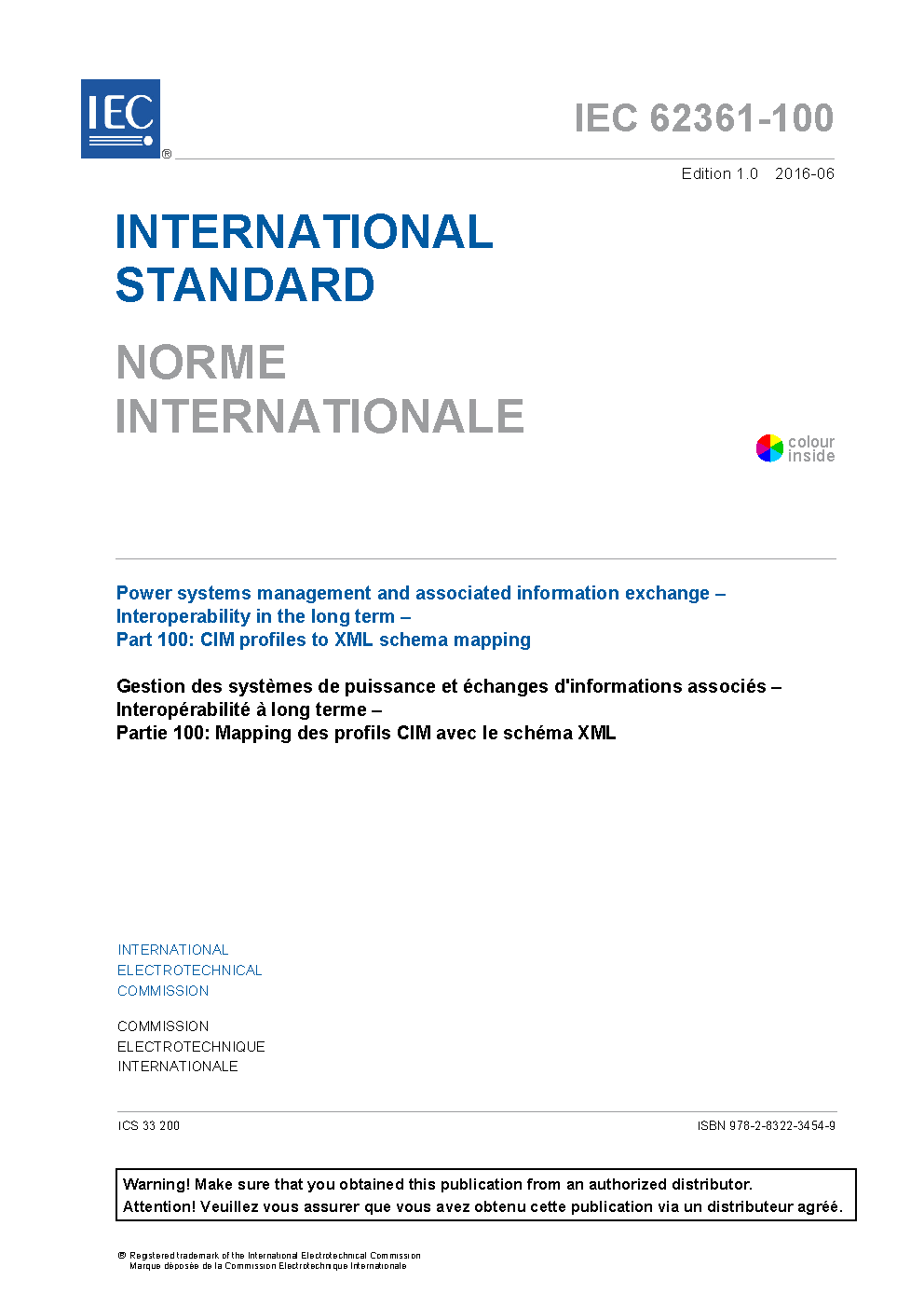 IEC 62361-100:2016 describes a mapping from CIM profiles to W3C XML Schemas, intended to facilitate the exchange of information in the form of XML documents whose semantics are defined by the IEC CIM and whose syntax is defined by a W3C XML schema.