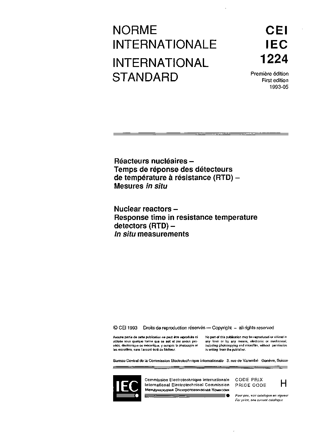 This standard describes the requirements for the design, material selection, procurement, construction, and testing of resistance temperature detectors (RTDs) used in nuclear power plants (NPPs). These RTDs may be used in both the nuclear safety I&C systems and/or in the non-safety-related instrumentation systems.