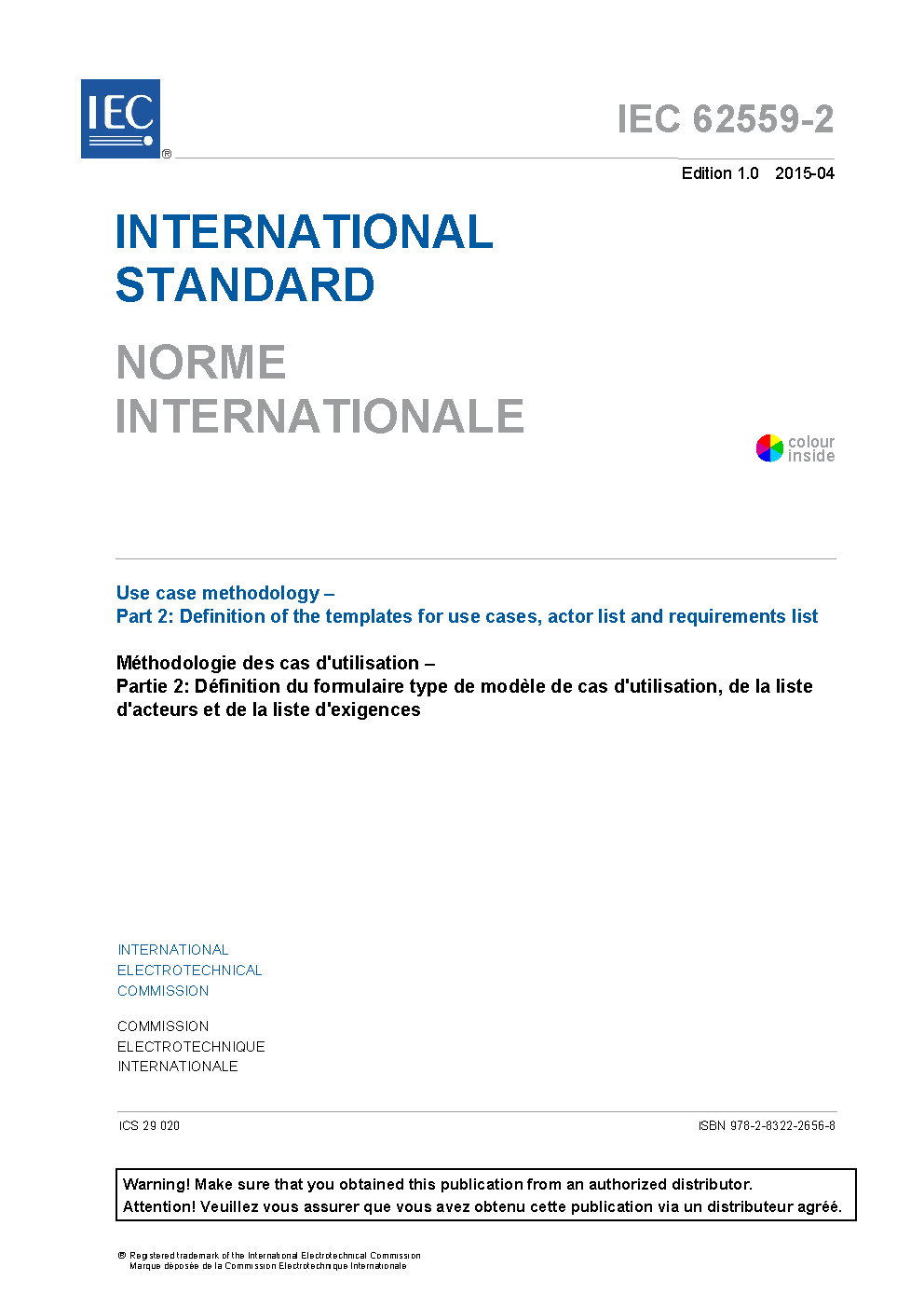 IEC 62559-2:2015 Use case methodology - Part 2: Definition of the templates for use cases, actor list and requirements list
