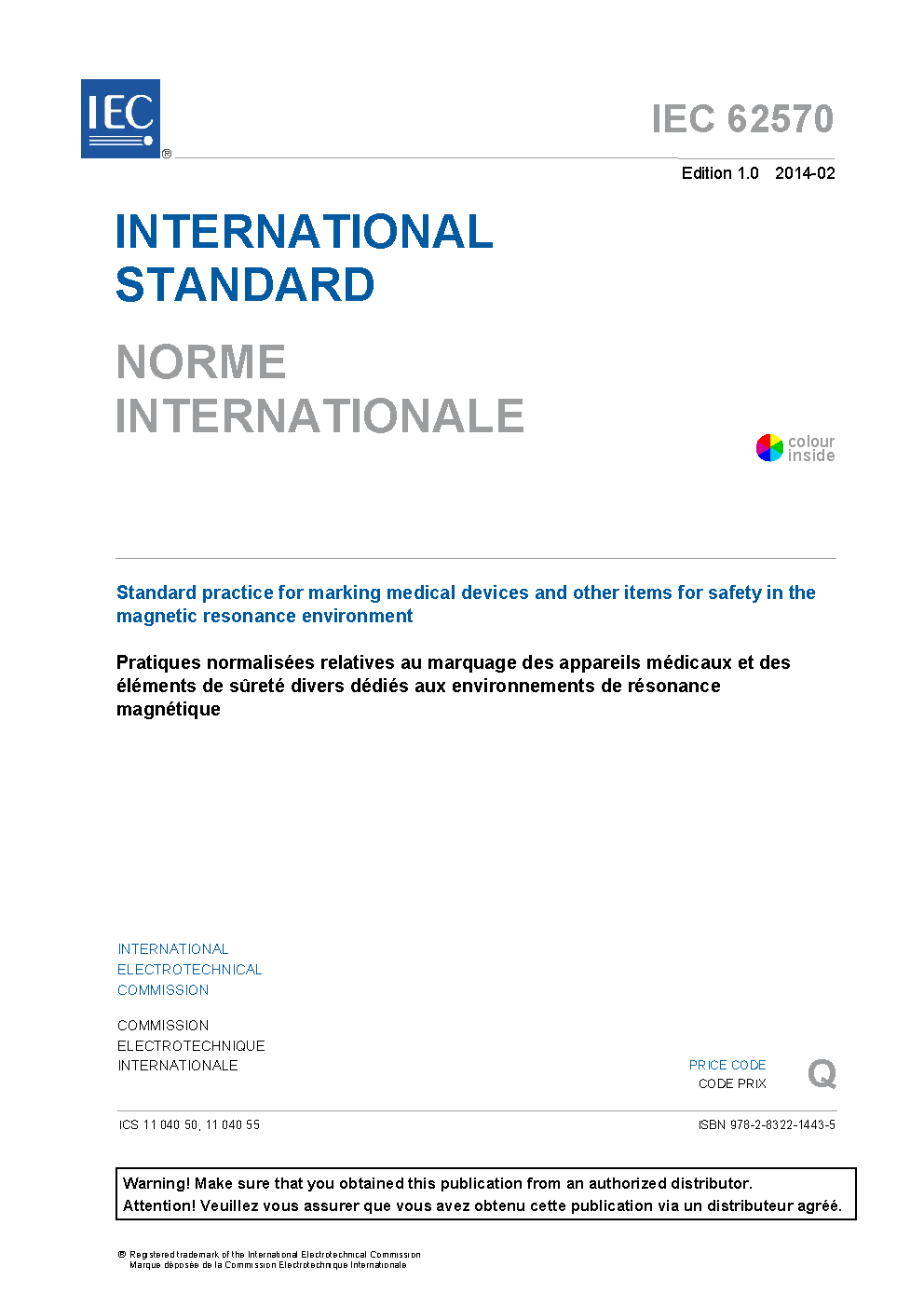 IEC 62570:2014 Standard practice for marking medical devices and other items for safety in the magnetic resonance environment