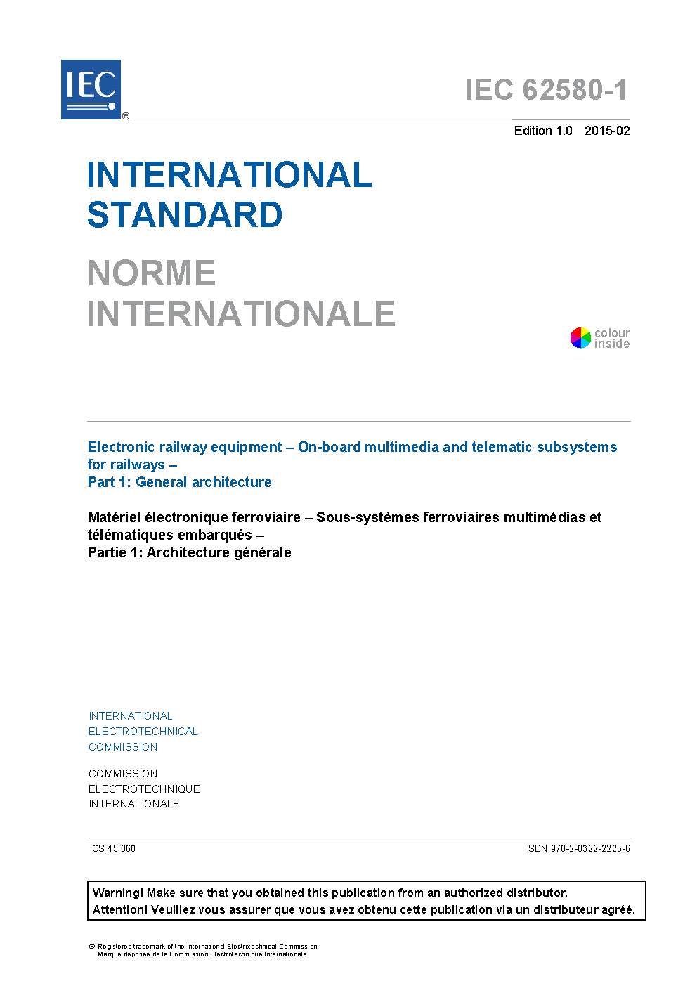IEC 62580-1:2015 Electronic railway equipment - On-board multimedia and telematic subsystems for railways - Part 1: General architecture