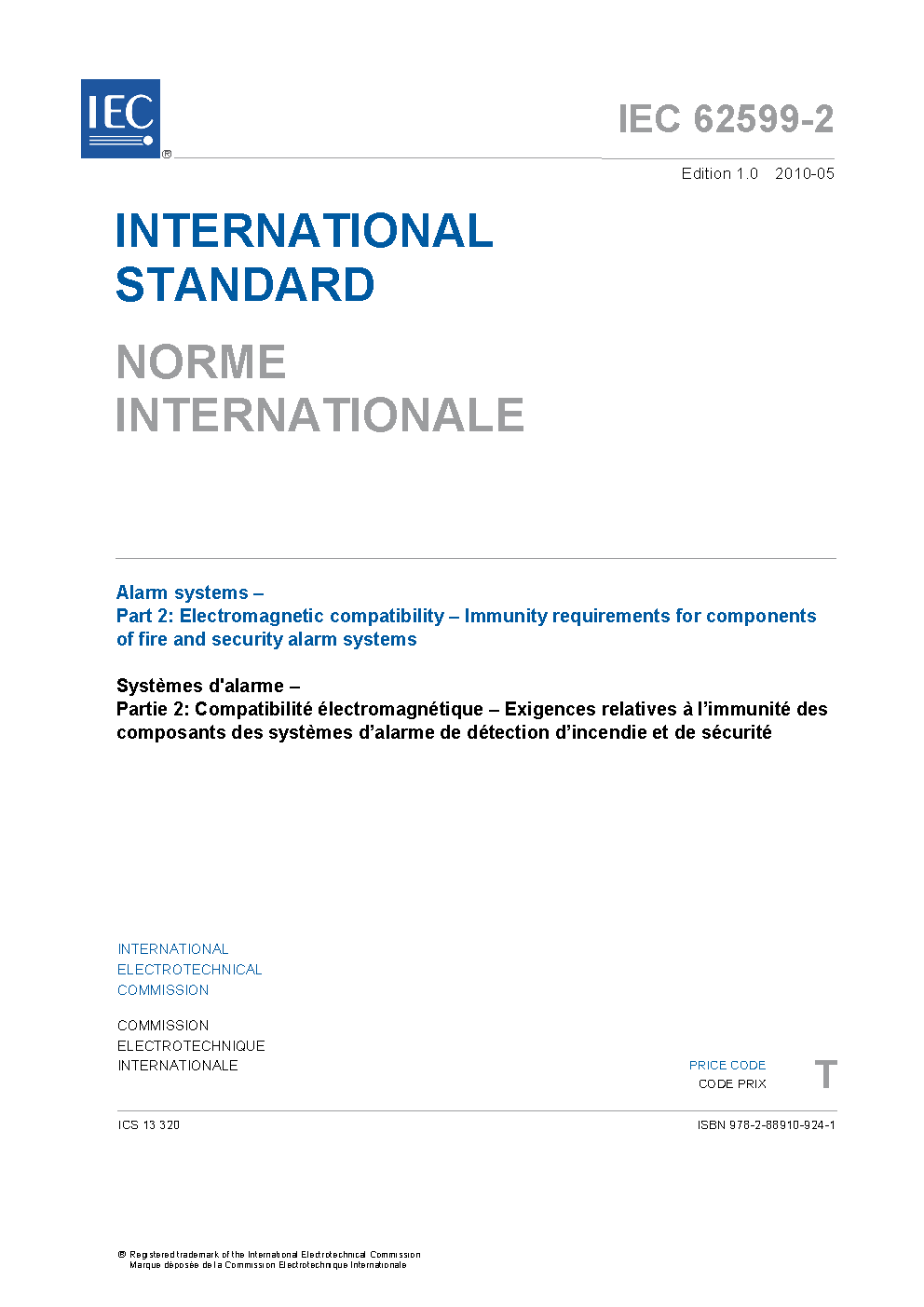 IEC 62599-2:2010 for immunity requirements applies to the components of the following alarm systems, intended for use in and around buildings in residential, commercial, light industrial and industrial environments: