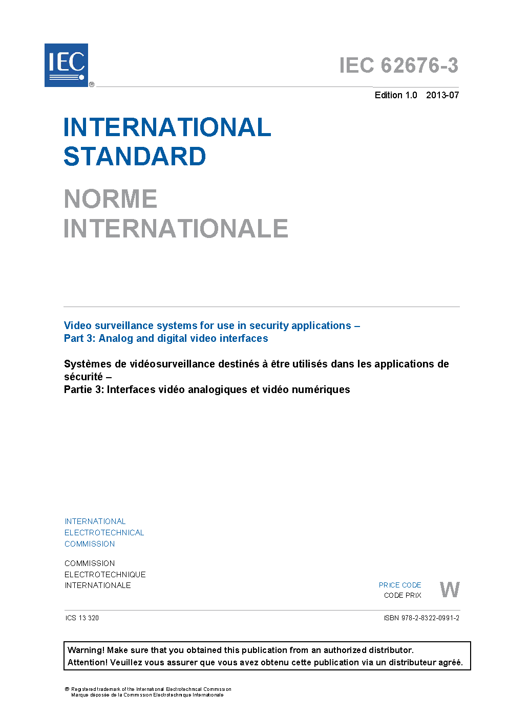 IEC 62676-3:2013 Video surveillance systems for use in security applications - Part 3: Analog and digital video interfaces
