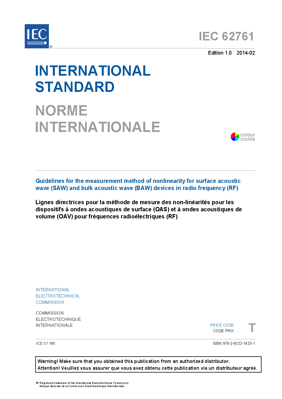 IEC 62761:2014 Guidelines for the measurement method of nonlinearity for surface acoustic wave (SAW) and bulk acoustic wave (BAW) devices in radio frequency (RF)