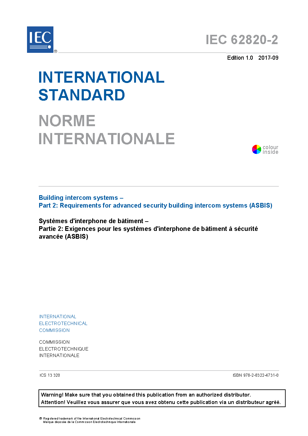 IEC 62820-2:2017 Building intercom systems - Part 2: Requirements for advanced security building intercom systems (ASBIS)