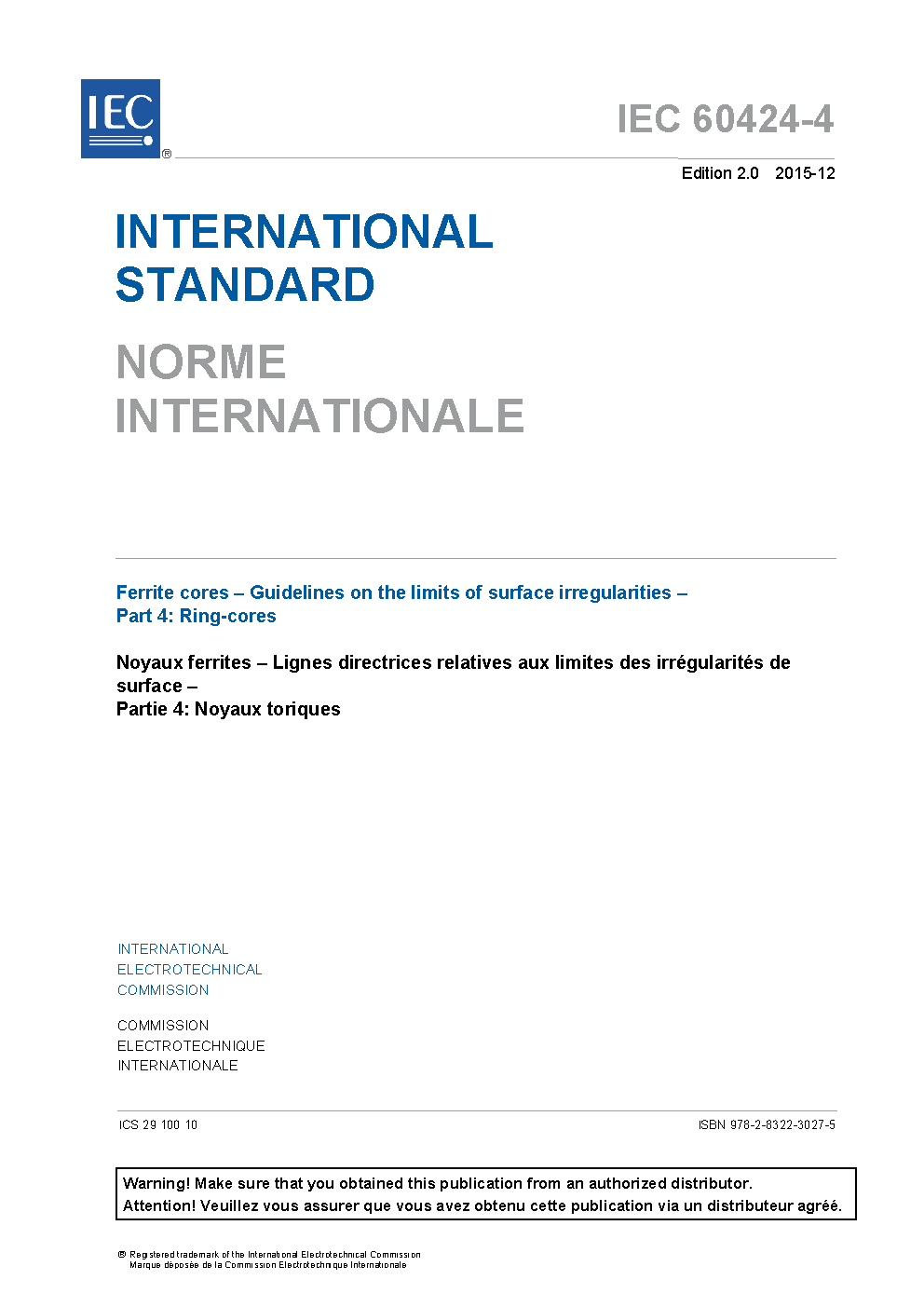 IEC 63093-12:2019 Ferrite cores - Guidelines on dimensions and the limits of surface irregularities - Part 12: Ring-cores