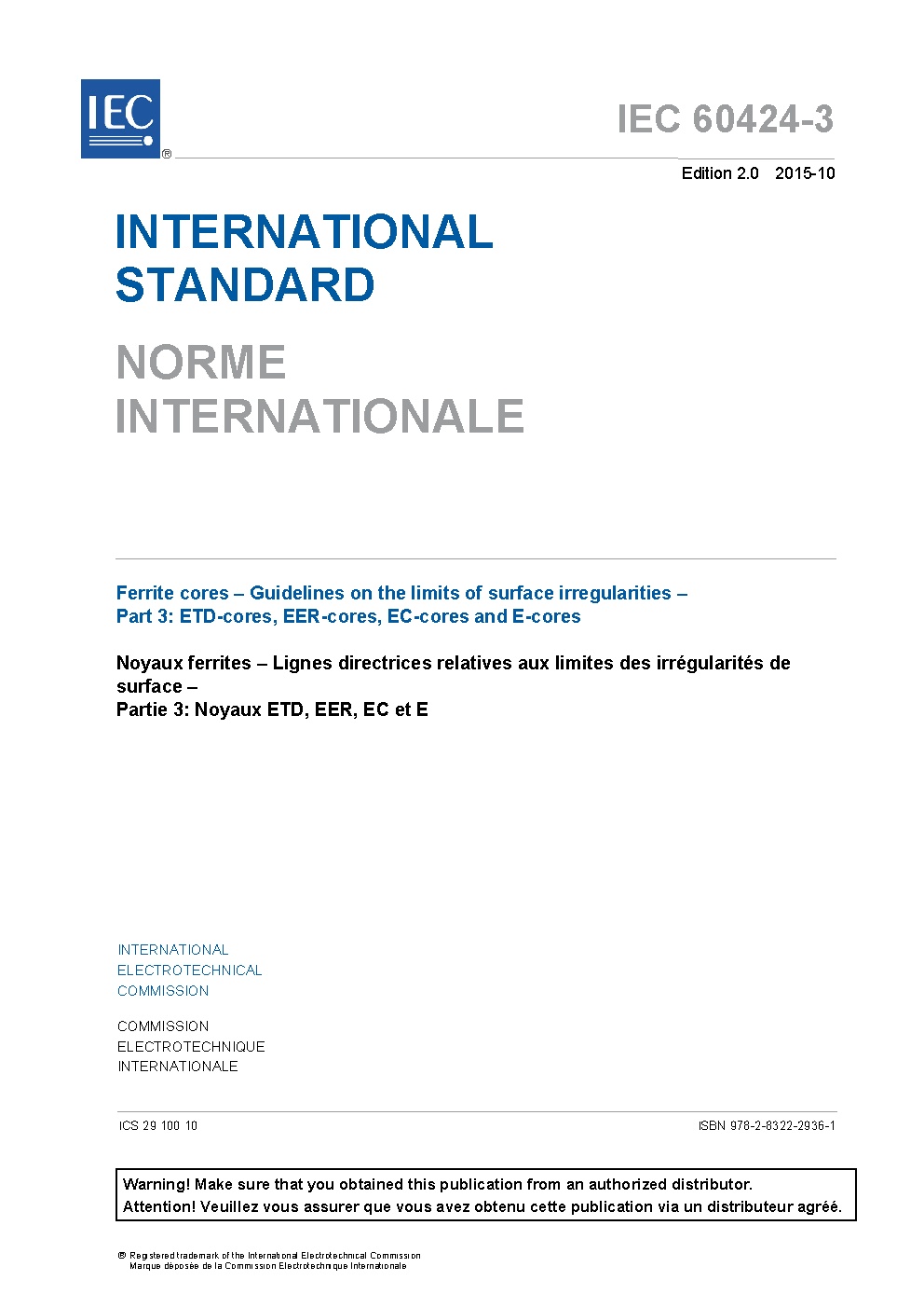 IEC 63093-8:2018 Ferrite cores - Guidelines on dimensions and the limits of surface irregularities - Part 8: E-cores
