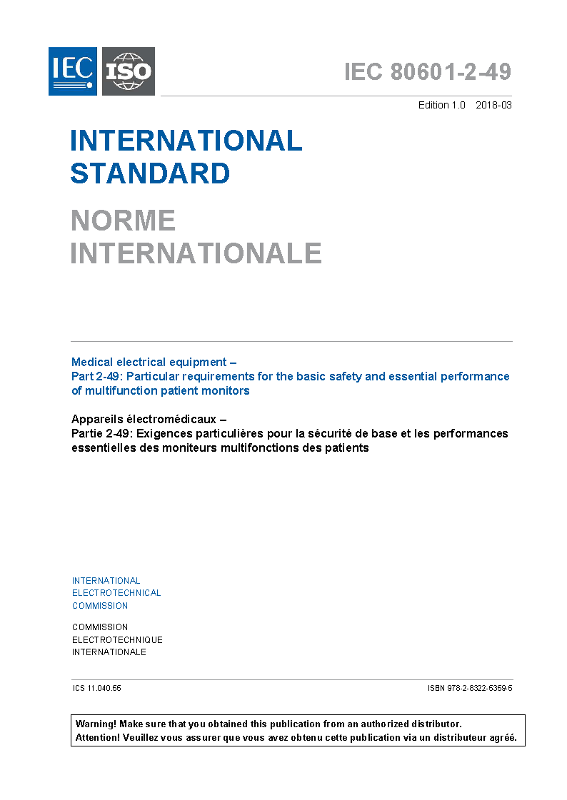 IEC 80601-2-49:2018/AMD1:2024 Amendment 1 - Medical electrical equipment - Part 2-49: Particular requirements for the basic safety and essential performance of multifunction patient monitors