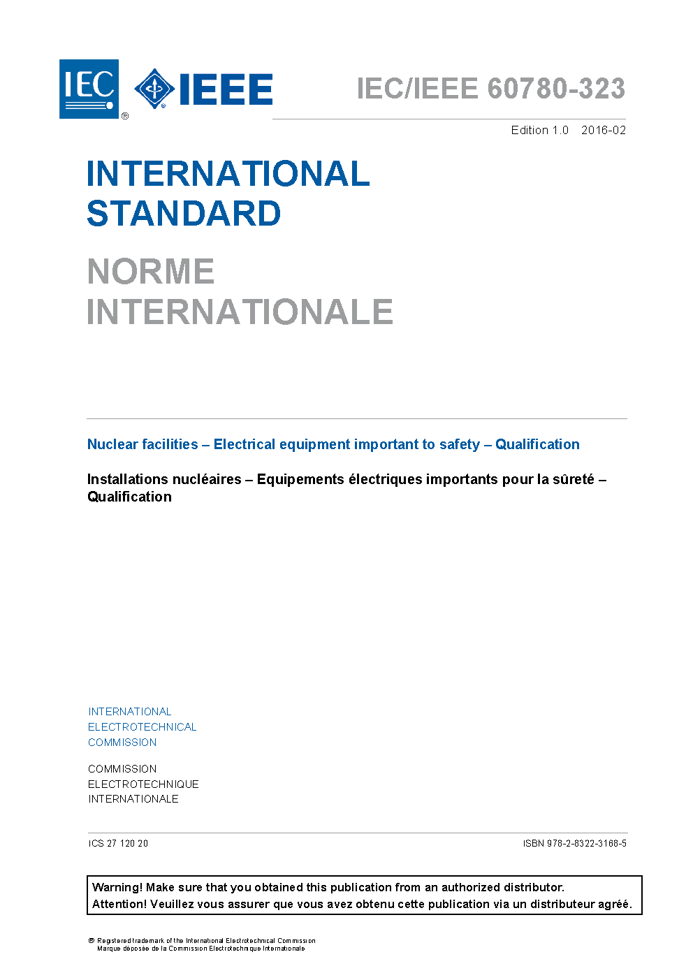 IEC/IEEE 60780-323:2016 Nuclear facilities - Electrical equipment important to safety - Qualification