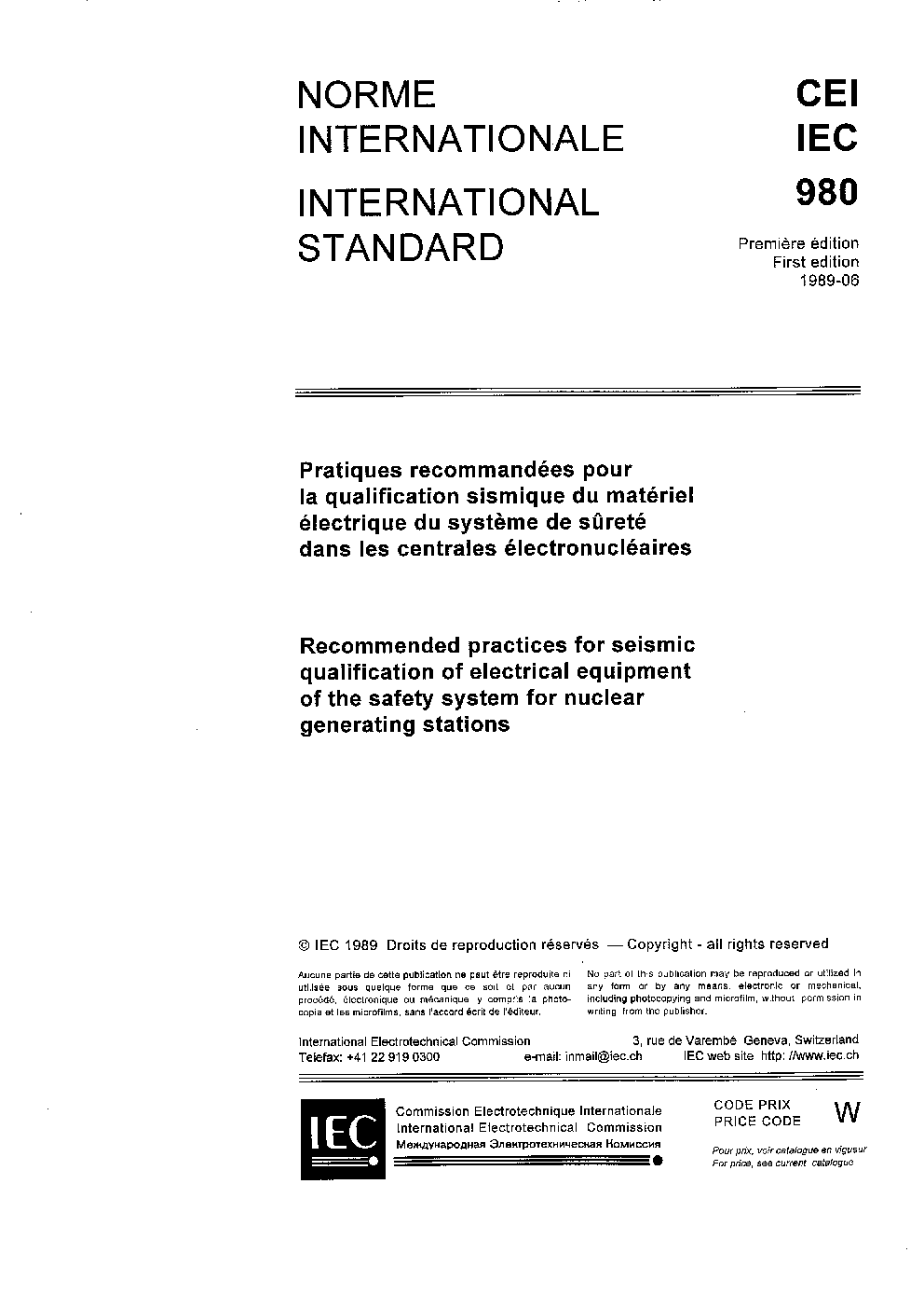 IEC/IEEE 60980-344:2020 Nuclear facilities - Equipment important to safety - Seismic qualification