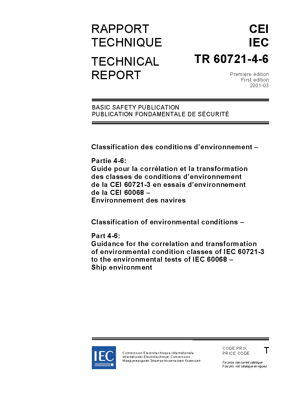 IEC TR 60721-4-6:2001 Classification of environmental conditions - Part 4-6: Guidance for the correlation and transformation of environmental condition classes of IEC 60721-3 to the environmental tests of IEC 60068 - Ship environment